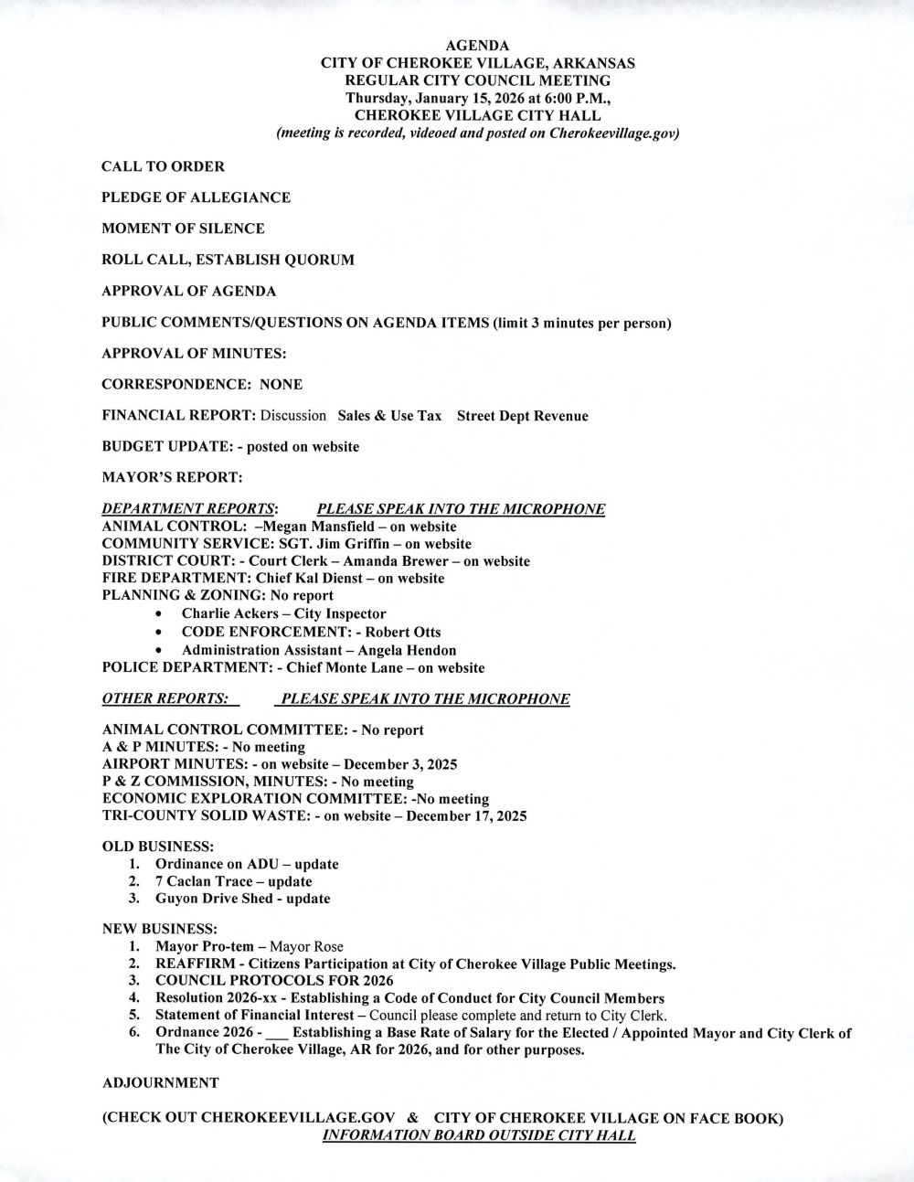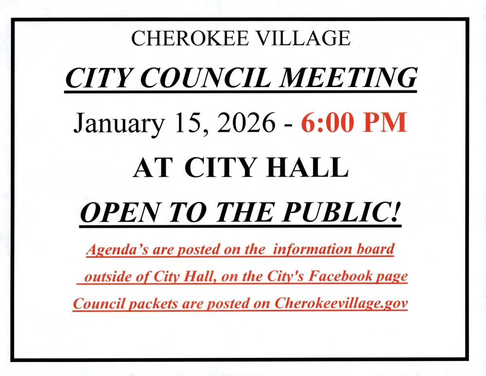 CITY BUSINESS - ALSO POSTED ON THE CITY OF CHEROKEE VILLAGE FACEBOOK PAGE
